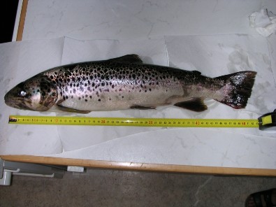 Schönste Bachforelle mit 1,76kg und 54cm im Jahr 2003 gefangen beim Kraftwerk Weinzöttl unten bereich Mur Graz